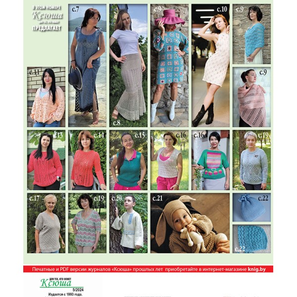 В журнале "Ксюша. Для тех, кто вяжет №2024-05" опубликованы полные описания, выкройки и схемы для вязания спицами и крючком моделей одежды.