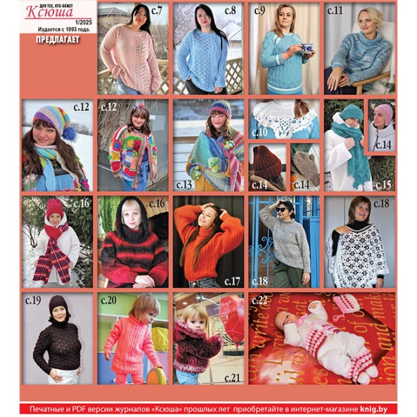В журнале "Ксюша. Для тех, кто вяжет №2025-01" опубликованы полные описания, выкройки и схемы для вязания спицами и крючком моделей одежды.