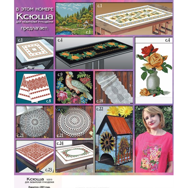 В журнале "Ксюша. Для любителей рукоделия №2019-09" опубликованы модели в различных техниках рукоделия, указанные в содержании.